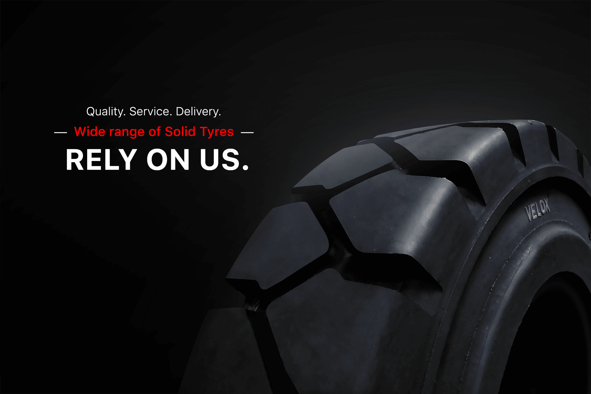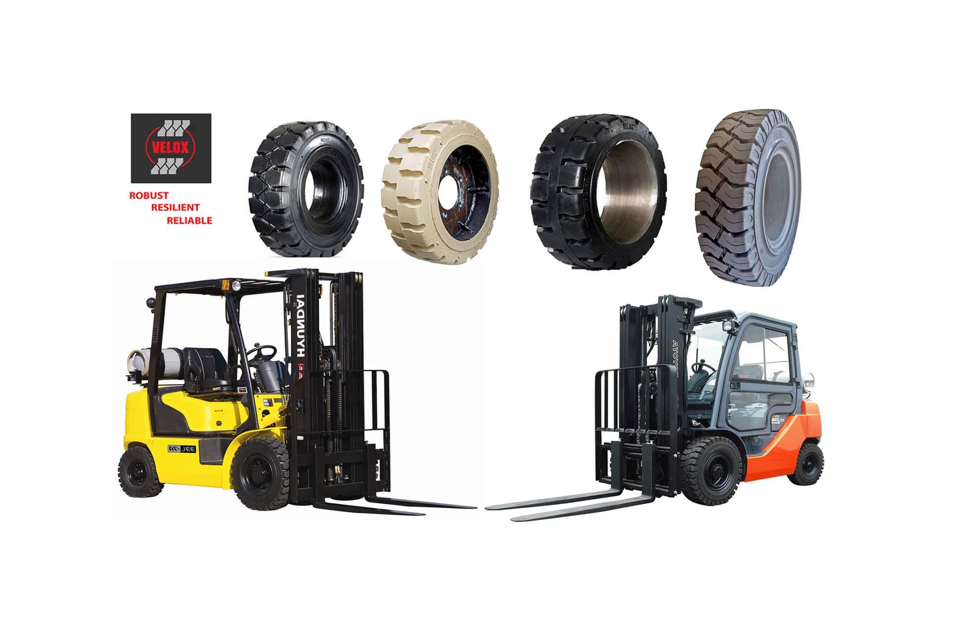 Velox is a high performance Solid Rubber Tyre company that brings quality and innovative technology to consumers worldwide. Velox is a leading entity in the global solid rubber tyre business. We use latest technology, modern equipments and high quality rubber to produce robust compounds. Velox Solid Rubber Tyres are designed to meet the challenges of tough weather conditions in diverse realms. We have a wide range of tyres for different requirements. The four different types of tyres are Non Marking Tyres, Heat & Oil Resistant Tyres, Velox Cushion Tyres and Velox Press-on Tyres.